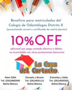 ARANCELES CURSOS CONVENIOS Y BENEFICIOS TRAMITES REQUISITOS CONSULTORIO REGLAMENTO HISTORIA CLÍNICA búsqueda de profesionales Clasificados cursos y jornadas Conveniencia del uso del Piezosurgery en la Cirugía Maxilofacial PASANTIA PERSONALIZADA IMPLANTES MEDIATOS E INMEDIATOS PASANTIA PERSONALIZADA DE PRÓTESIS SOBRE IMPLANTES DIPLOMATURA EN ARMONIZACIÓN OROFACIAL DIPLOMATURA UNIVERSITARIA EN ALINEADORES DENTALES VER TODOS IMPRIMI TU BOLETA BUSCAR NOVEDADES Novedades Información de Pago – Matrícula 2026 INTRUSISMO Beneficios para Matriculados del Distrito X TodoopticaLibreriaIndumentariaGastronomiaInsumos Odontológicosgimnasios Serodino Óptica - Alejandra Di Croce25% en armazones y cristales10% Gafas de sol15% DEBITO10% CREDITO La casa del cartucho Martinica-15% off Suma-15% off Balcon del golf A/L Del centro New Life Major´s Odontologia Roster dent SIMONA25% de descuento pago efectivo IFEELGOODGYM15% de descuento para odontólogos matriculados 10% para grupo familiares DISTRIBUIDORA GIPAL28% en limpieza general 18%en líquidos 8% en aerosoles ecodoc50% en todos los estudios KO SPORTJueves 20% off contado efectivo. Todos los días 15% off en efectivo kidu10% de descuento en insumos ortodoncia y odontología GRAND CENTRALLorem ipsum dolor sit amet, consectetur adipisicing elit. Quidem, provident. Amor por la milanesa